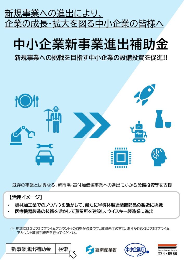 中小企業新事業進出促進補助金 4/22(火)公募受付開始