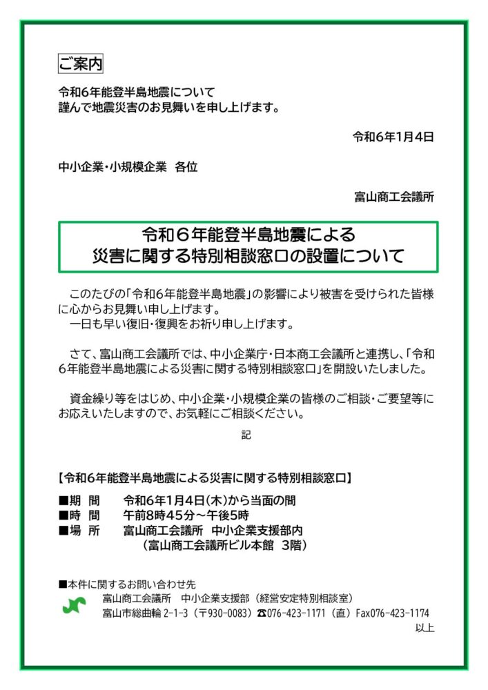 令和6年能登半島地震による災害に関する特別相談窓口の設置について