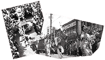 一方、56年から「市民仮装コンクール」を併催。企業や市民グループ10数組が趣向をこらし、ユーモラスな演出やデコレーションに拍手が湧き、参加団体も次第に多くなってきている。