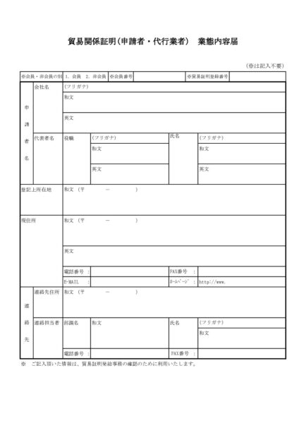 会員・非会員の別、会員番号、貿易証明登録番号は、商工会議所側の記載欄ですので、記載の必要はありません。