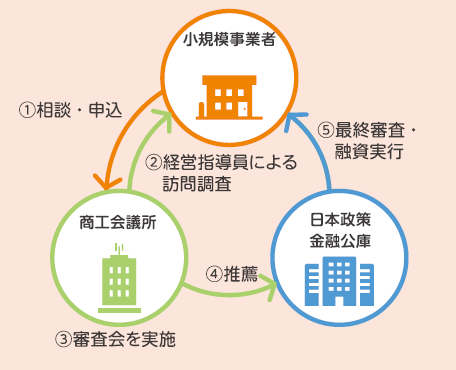 小規模事業者が、経営改善を行うための事業資金を商工会議所の推薦により、(株)日本政策金融公庫から