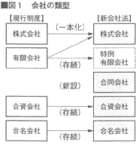 ■株式会社と有限会社が一本化これまで、有限会社は株式会社と比べ信用力が劣るといったことから小規模企業であっても株式会社の形態を取ることが多く、実態として有限会社とは差がない株式会社が増加したことなどの状況を踏まえ、新会社法では有限会社制度を廃止して株式会社制度に一本化します(図1)。従って、新会社法施行後は有限会社が設立できないことになります。 ■有限会社がなくなる? 既存の有限会社(旧有限会社)は,新会社法上、株式会社として存続することになりますが、従前の有限会社とほぼ同様の規律の適用を受ける会社として存続することになります。そのために定款の変更や登記申請等の特別の手続きはいりませんが、旧有限会社の社員、経営者、債権者等に混乱が起きないように特則により引き続き実質が維持され、商号使用も引き続き「有限会社」の文字を用いること認めるなど、所要の経過措置を設けています。これを「特例有限会社」といいます。特例有限会社では、「取締役任期の無制限」、「計算書類の公告は不要」といった旧有限会社の規定もそのまま適用されます。 ■有限会社から株式会社への移行 一方、新会社法施行後に特例有限会社が株式会社に移行するには、定款の変更や「株式会社」を入れた商号の変更とともに、登記手続として、特例有限会社については解散登記を、商号変更後の株式会社については設立登記が必要となります。 ■類似商号規制の廃止 また、商号に関しては、登記済みの商号と同一市区町村内において同じ営業のための商号を登記できないとする、従来の類似商号規制は廃止されます。これによって、類似商号の調査等が不要となり会社の設立登記が簡素化されスピーディにできるようになります。 ただし、類似商号に関する使用差止め・損害賠償請求等の争訟はこれまでどおり不正競争防止法などによって行います。 ■最低資本金の制度がなくなり、1円でも会社設立ができる! 株式会社の設立に際して出資すべき額について,下限額(現行法では株式会社につき1、000万円,有限会社につき300万円)の制限を撤廃します。つまり、1円の出資金でも会社が設立できるようになります。これにより起業家やベンチャー企業が株式会社を設立しやすくなります。 しかし、一方では会社設立が容易になり、濫用されないかと不安になりますが、そこは、これまでと同様に法人格の否認や役員の第三者責任の規定等により適切な解決が図られます。 ■既存の「確認会社」(1円会社)はどうなるの? では、最低資本金規制特例制度によって最低資本金規制を免除された「確認会社」は、5年以内に最低資本金(株式会社1、000万円、有限会社300万円)以上の増資を行うことや、毎年経済産業大臣に計算書類を提出することが必要でしたが、新会社法による最低資本金制度の撤廃に伴い本特例制度も廃止され、「確認会社」に課せられていたこれまでの義務がなくなります。 ■株式譲渡制限会社における定款自治の拡大 また、株式譲渡制限会社(その発行する全ての株式についてその譲渡につき当該会社の承認を要する株式会社)では定款自治の範囲が拡大され,取締役会を置かないこともでき、また取締役・監査役の任期を最長10年までとすることができるようになります。