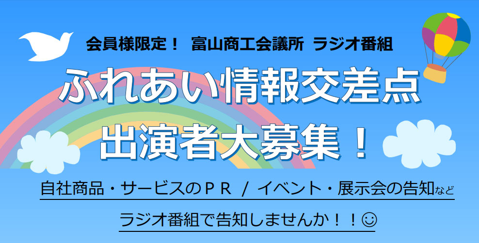 富山商工会議所のラジオ番組「ふれあい情報交差点」に出演しませんか?