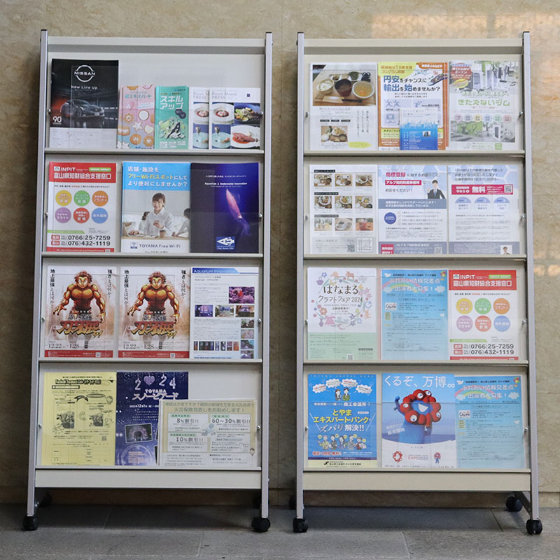 会員企業情報展示サービスは、当所会員事業所のチラシ・カタログ・会社案内等のPR資料を、富山商工会議所ビル1階の「ふれあいサロン」に展示するサービスです。