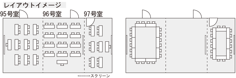 95-97号室/スクール形式60名、ロの字40名