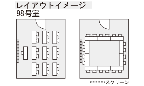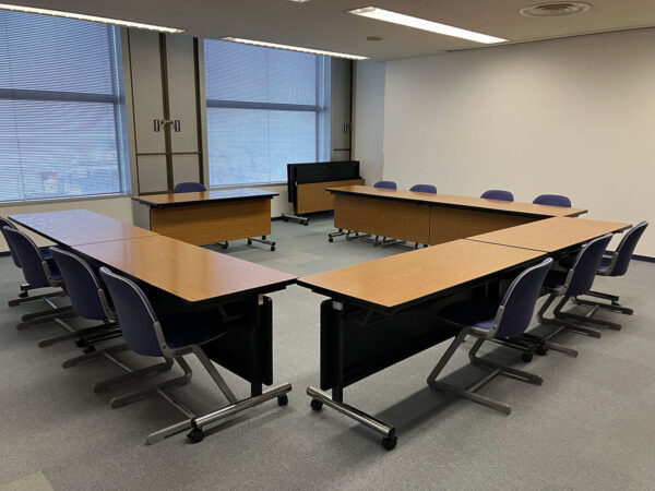 ロの字 ※基本形は「スクール形式」となります。 スクール形式以外でご利用いただいた場合は、退出時間までにご利用いただく前の状態に戻してください。 概要 定員スクール形式 18名 ロの字 20名 面積15坪 天井高2.4m 設備・備品 常設設備(無料)スクリーン天吊 1台 ホワイトボード 1台 インターネット FREE Wi-Fi その他プロジェクター、延長コード等備品についてはお問い合わせください。 もどる
